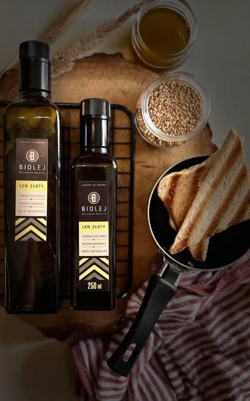 Biolej to polska, rodzinna olejarnia z Wrocławia, specjalizująca się w 100% naturalnych, zimnotłoczonych i niefiltrowanych olejach. Tłoczymy małe partie oleju z polskiego ziarna najwyższej jakości, dzięki czemu zachowują one pełnię wartości odżywczych, aromatu i świeżości.